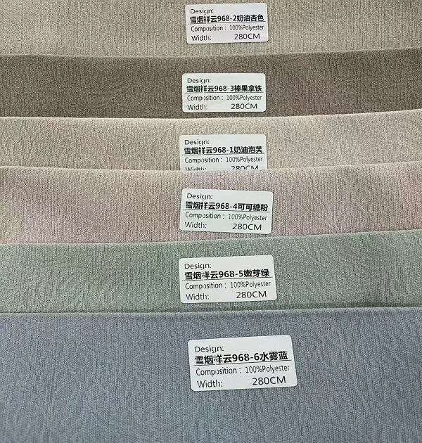 Des inspections de la qualité des tissus aux mises à jour des couleurs, le service de bout en bout de Chine rideaux occultants insonorisés 280-320CM largeur grossiste répond précisément aux besoins d'approvisionnement en gros des clients B2B. Qu'il s'agisse de rénover des logements en famille ou de réapprovisionner des distributeurs de produits d'ameublement, la série Xueyanxiangyun 968 de Chine rideaux occultants insonorisés 280-320CM largeur grossiste est un choix idéal pour l'ameublement.