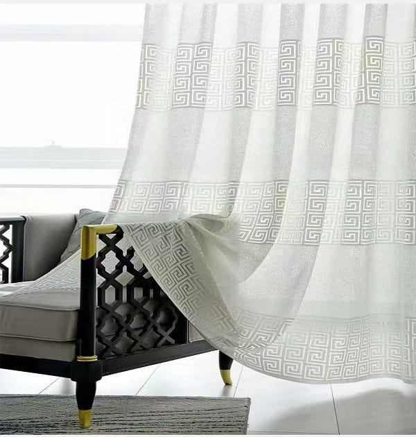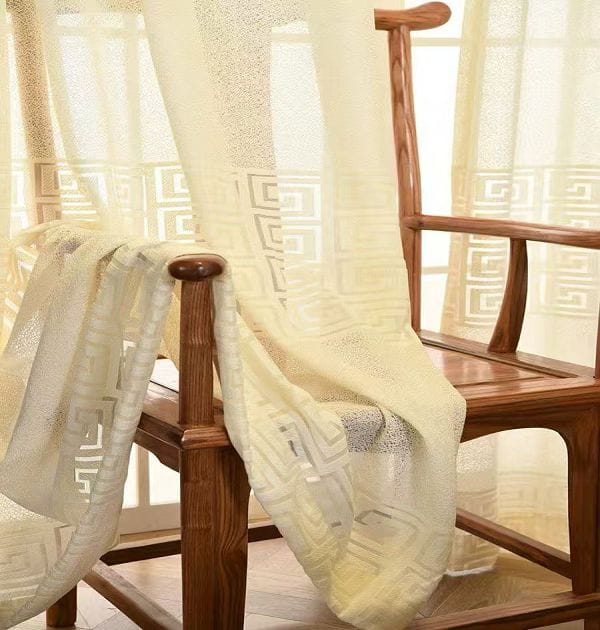 Keqiao, Shaoxing, China-sourced New Chinese folded jacquard window screen: traditional patterns, modern elegance, light-transmitting. B2B wholesale, pairs wit mycurtain.vip’s curtains for living rooms/studios.